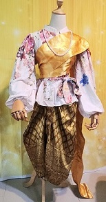 TA 12 เสื้อแขนพองสีชมพู ผ้าถุงสีทอง |