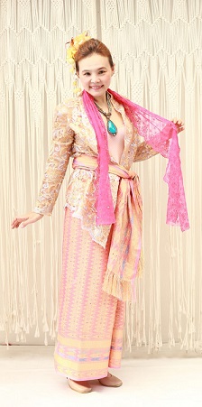 ชุดมลายู สีชมพูอ่อน ปักขาว ผ้าปาเต๊ะ ค่าเช่า 300 บาท ตามภาพ เพิ่มอุปกรณ์อื่นๆ ชิ้นละ 20 บาท |