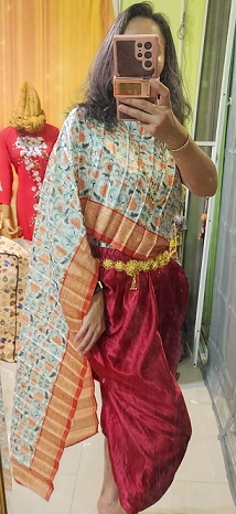 T21 ผ้าสไบเรียบสีทอง โจงสีแดง (สไบพิเศษ