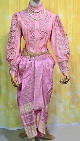 TA 15 เสื้อแขนพองสีชมพู โจงสีทองปัก |